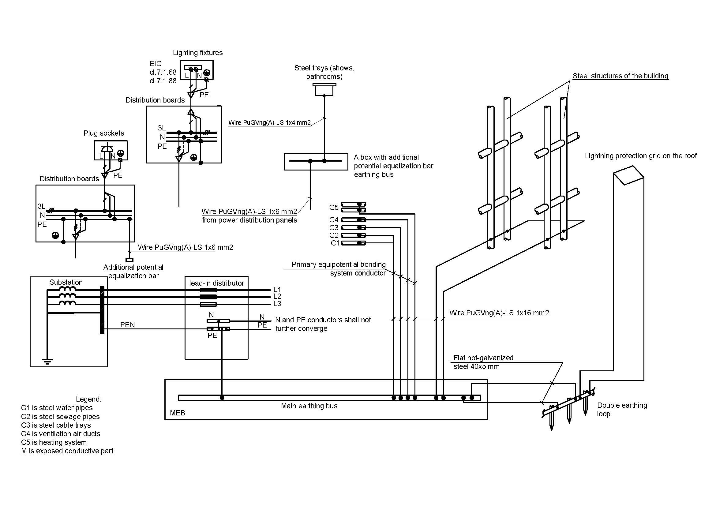 Below is a typical structural scheme of an earthing and lightning protection system: